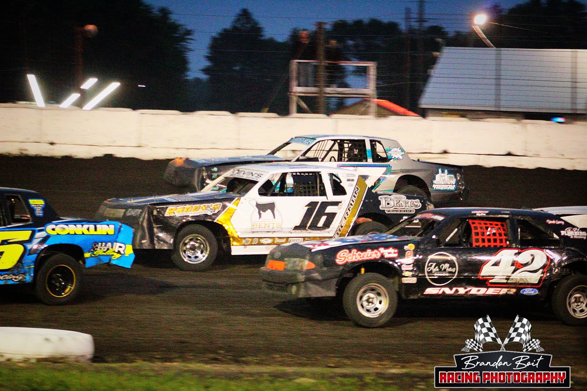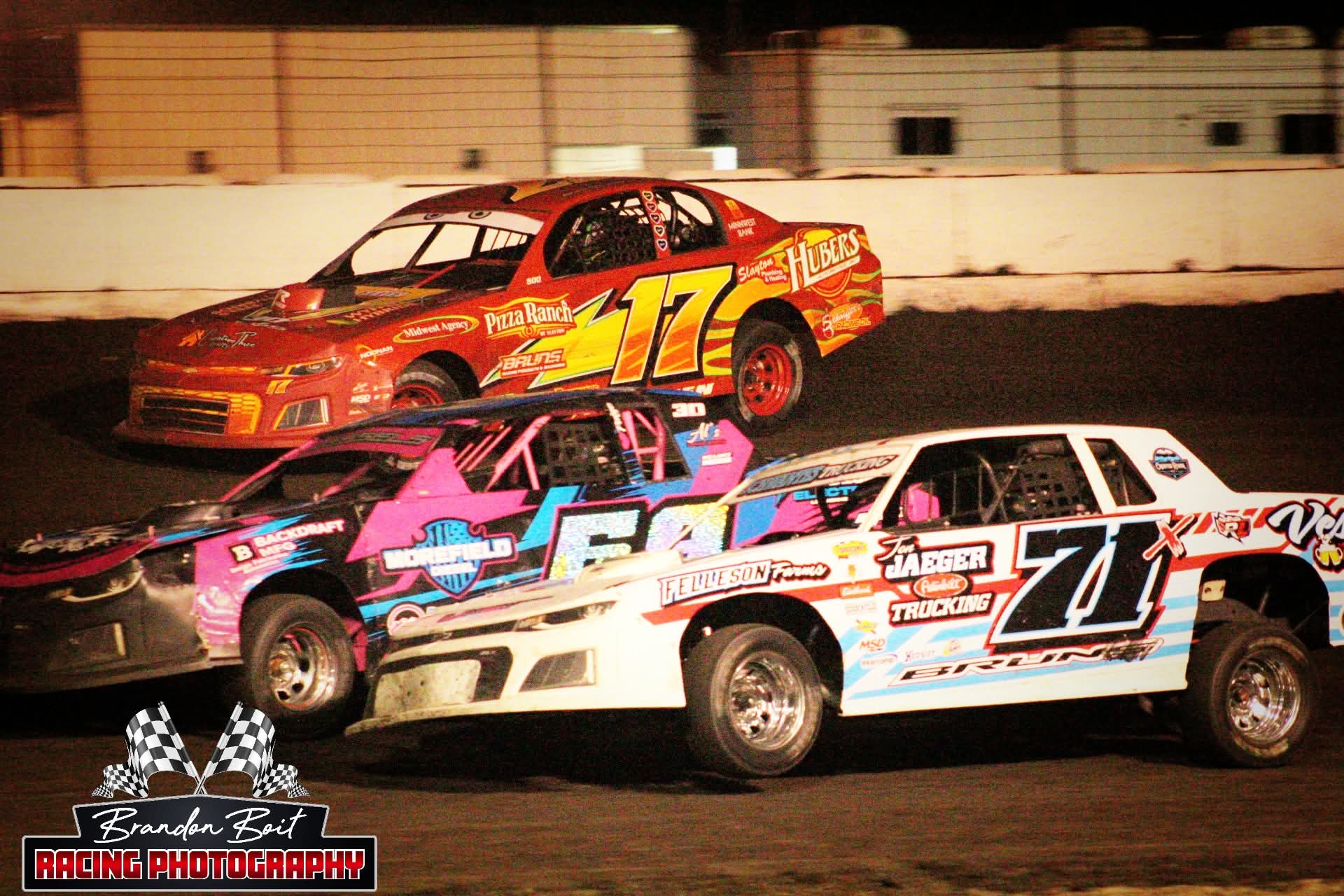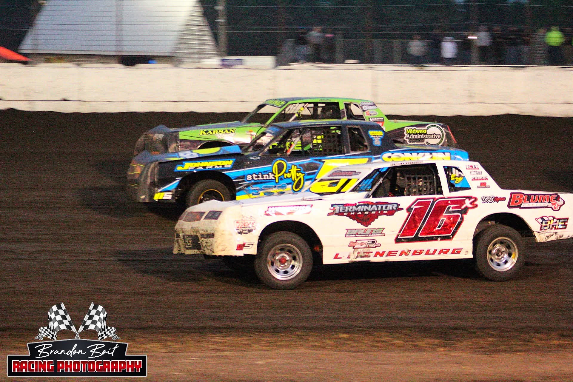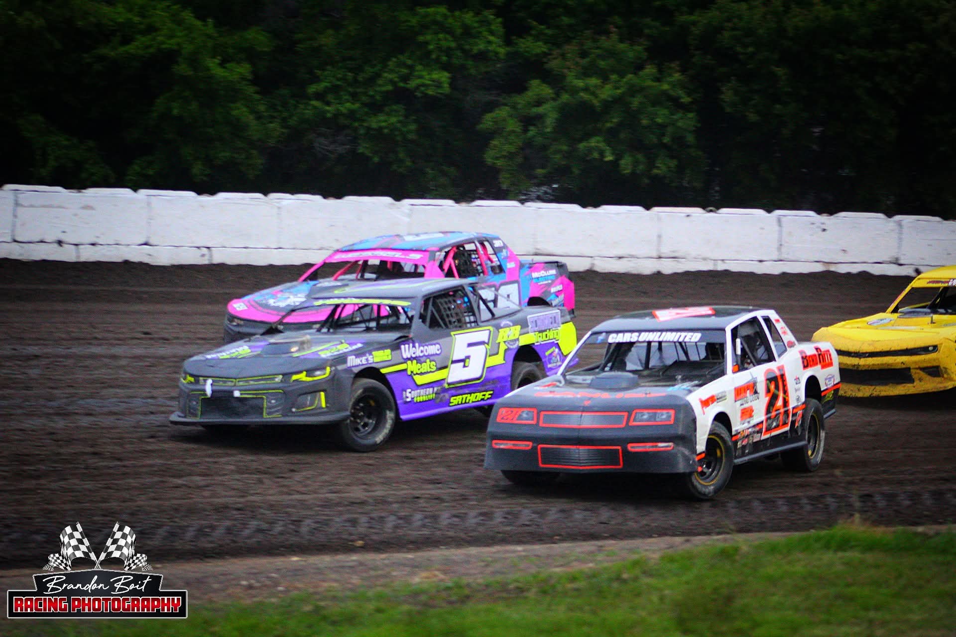 The Murray County Speedway is located on the southwest corner of the Murray County Fairgrounds in Slayton. The existence of the racetrack goes back to the 1930’s when there was a 1/2-mile horse racing track. Later, the track was converted to a 3/8-mile track. The infield of the track was also the football and baseball fields for Slayton High School, until the early 1960’s. In the early 1970’s the Slayton VFW club took over the operation of running the track on Friday nights for a few years and then the Slayton Jaycee’s ran it. The track would sit idle for a short time in the early 1980’s until Don Zins became the promoter. In the late 1980’s the track would sit idle again until 1993. Then a group of guys, (Dave Baack, Rande Johnson, Earl Linder, Gary Muecke, Roger Tyrell), decided to form an association of members, to get the Speedway back as an active track. The first several years had the Speedway facing many difficulties that need to be worked out. However, by the mid 1990’s found the Speedway holding many top-notch nights, that rivaled many of the tracks in Southwest Minnesota. IMCA and USRA have been the two sanctioning bodies that the cars have raced under.