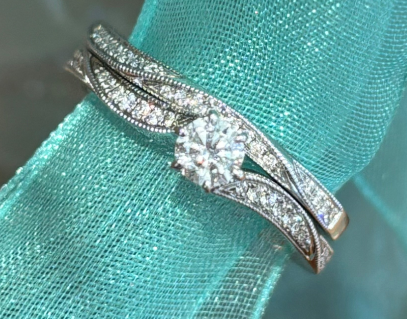 18K White Gold .24 Major Stone Engagement Ring and Band - Skewes Jewelry